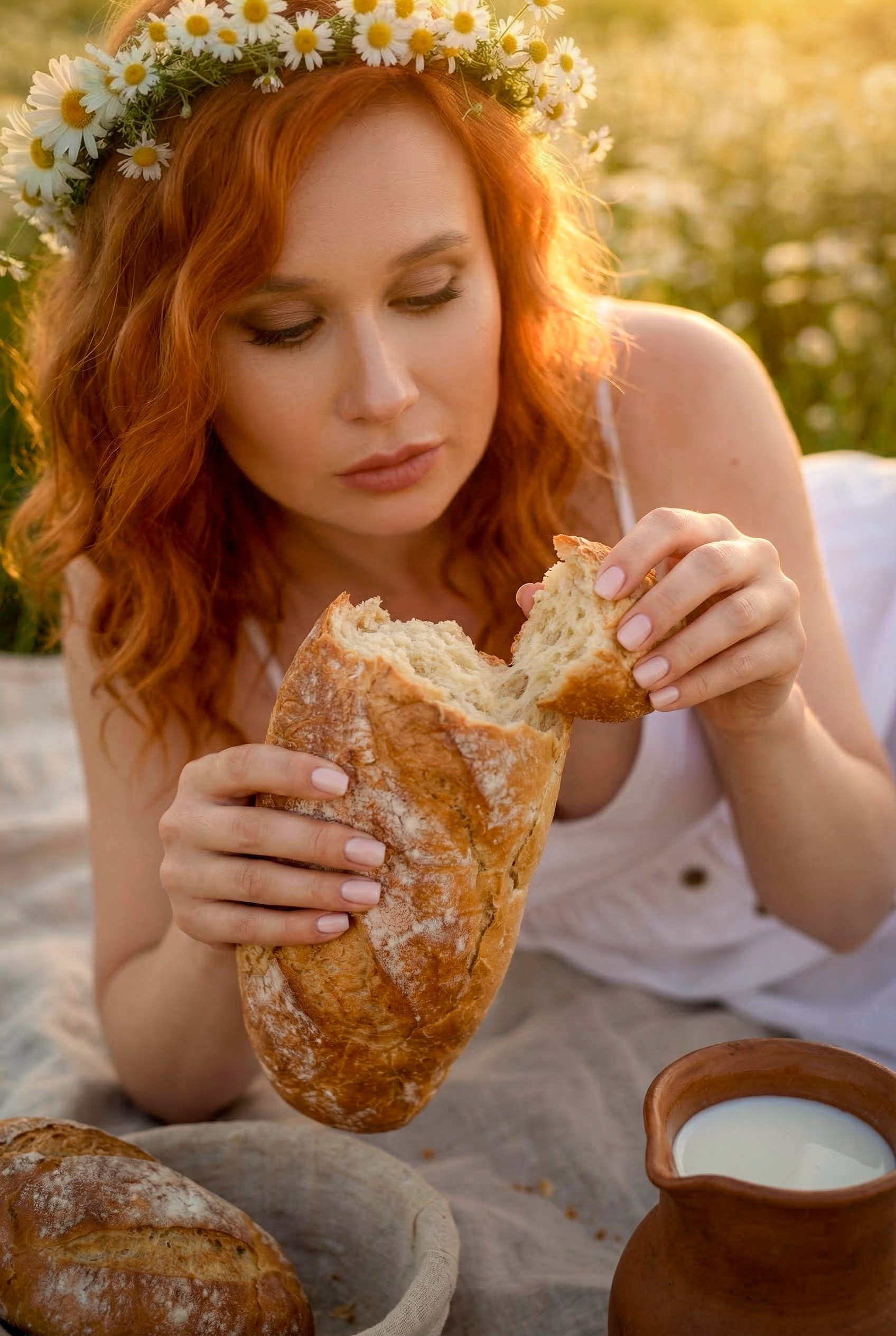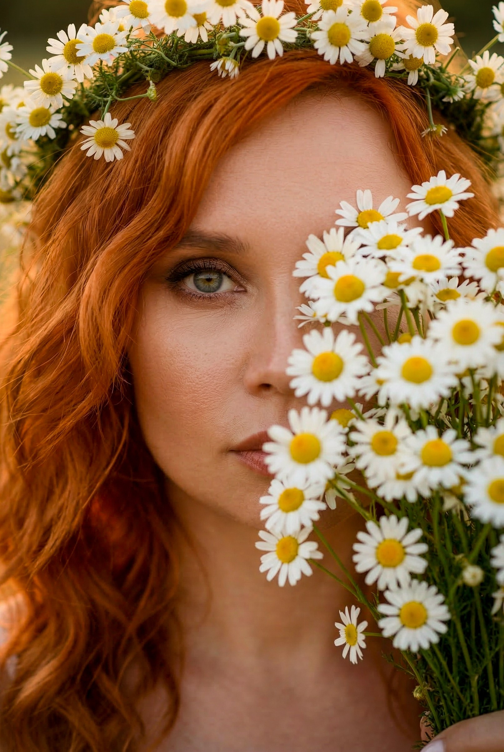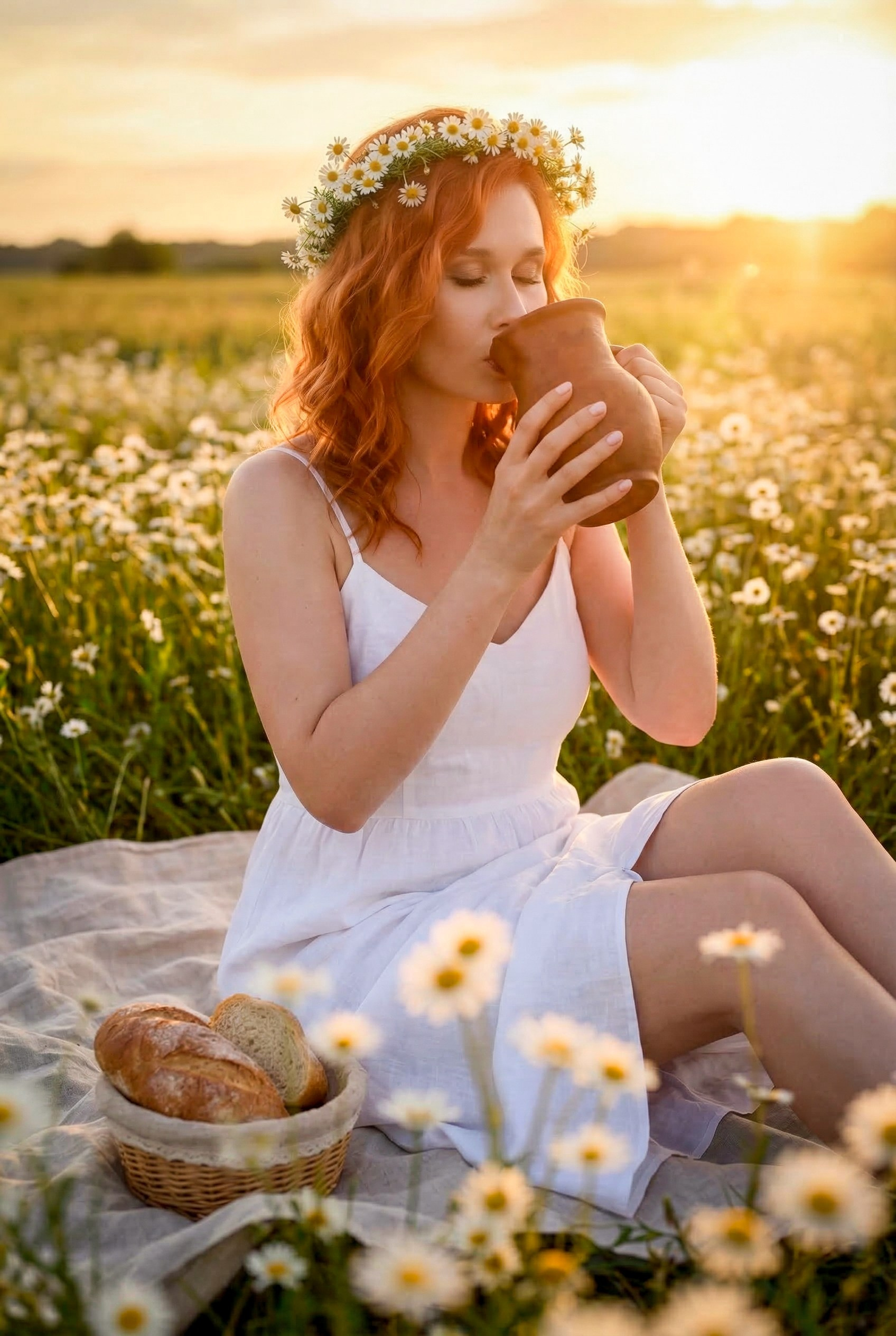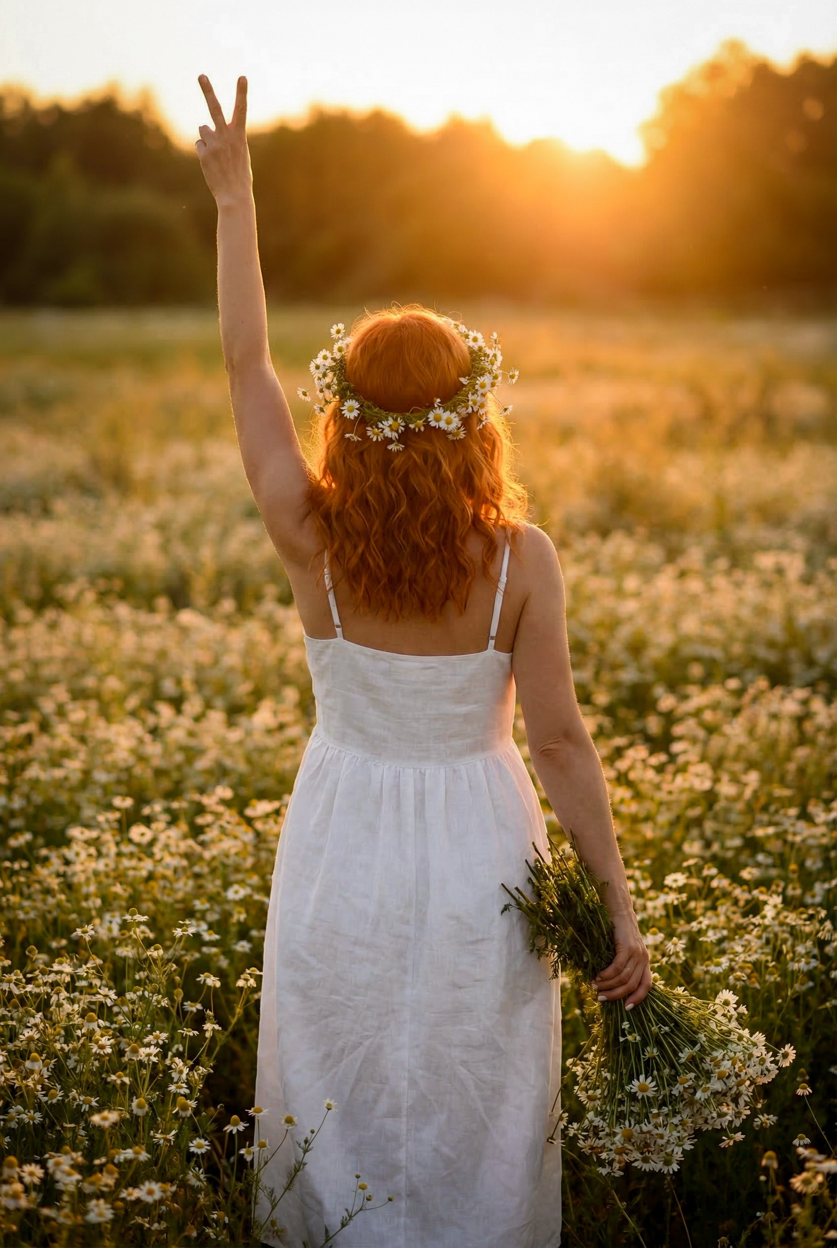 Очень красивая, нежная, летняя фотосессия на закате в ромашковом поле